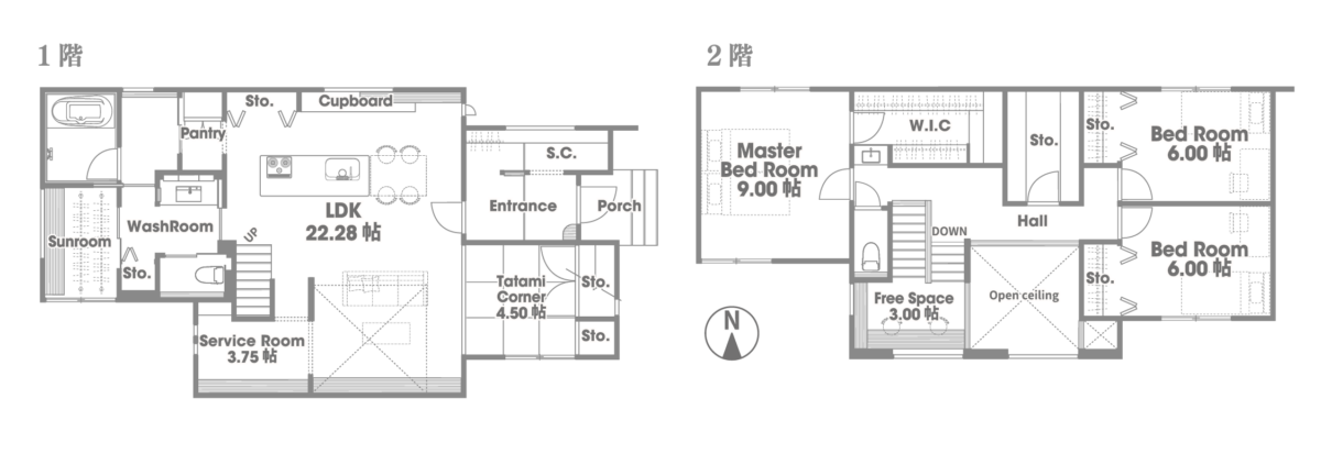 フリースペース下に投けたサービスルームは、固定棚付きで整理しやすく日用品やおもちゃの収納やインテリアをディスプレイするにも便利。さらにお子様のプレイルームとしても活用できる多機能空間です。限られた空間を無駄なく活かし、収納と遊び心を両立させた、家族にやさしい設計となりました。