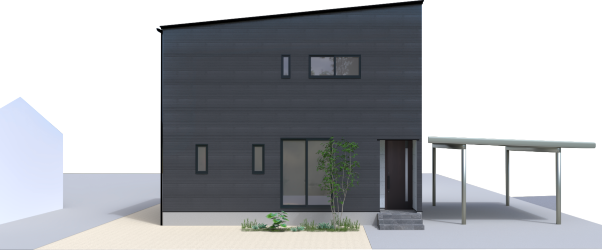 南向きの片流れの屋根には太陽光発電を搭載し、効率的に発電します。自家発電した電気を家庭で消費することで、環境にやさしく家計にもやさし暮らしにしてくれる住まいです。