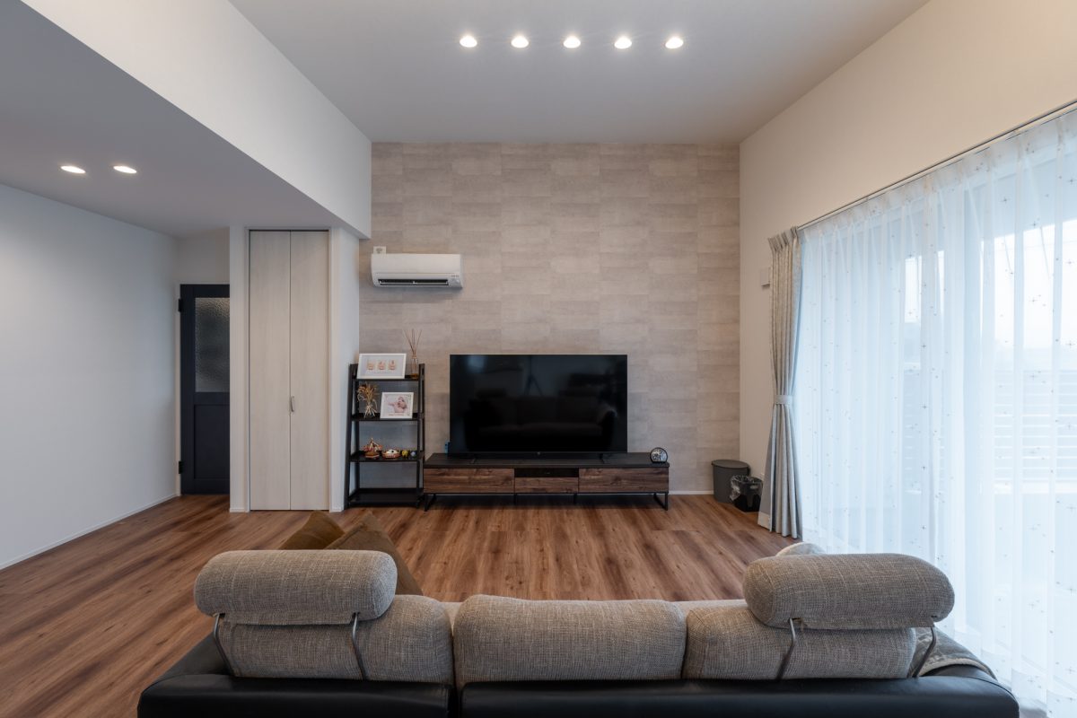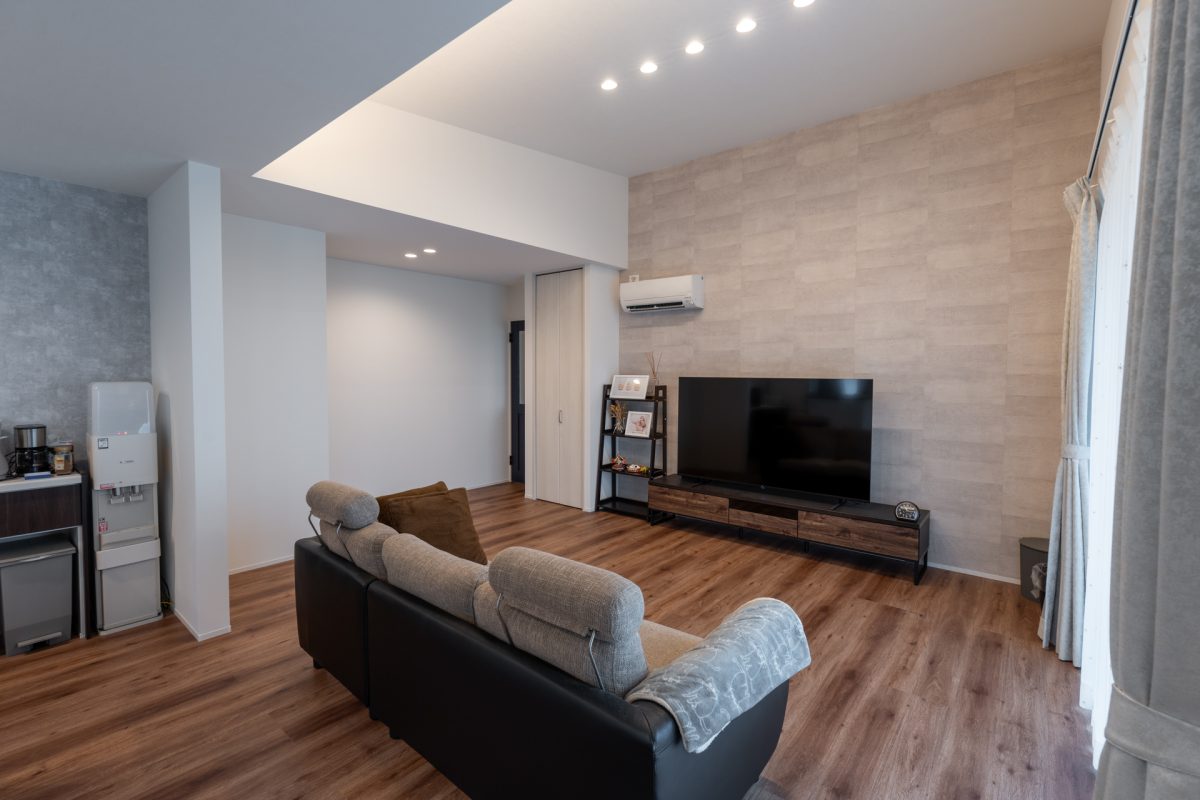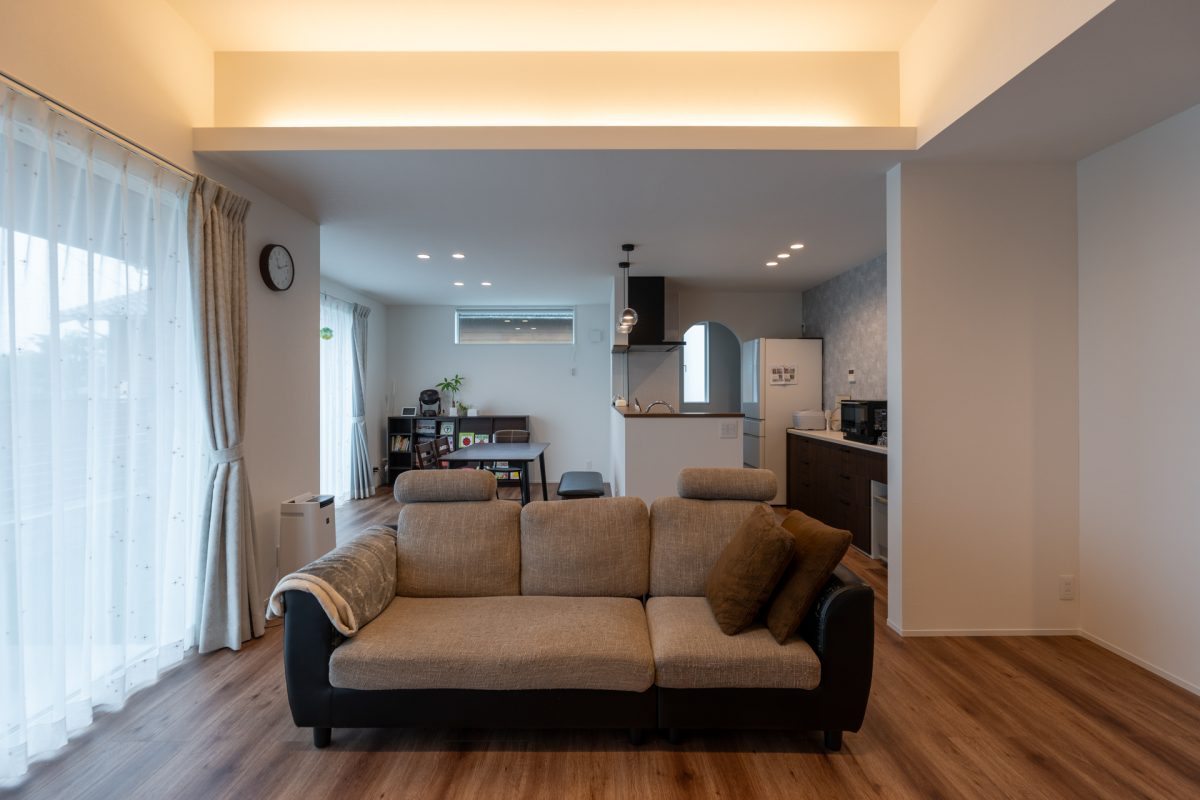 :一番は広々としたLDKです。家族が自然と集まる場所なので、勾配天井や大きな掃き出し窓、間接照明など、居心地を大切にしました。