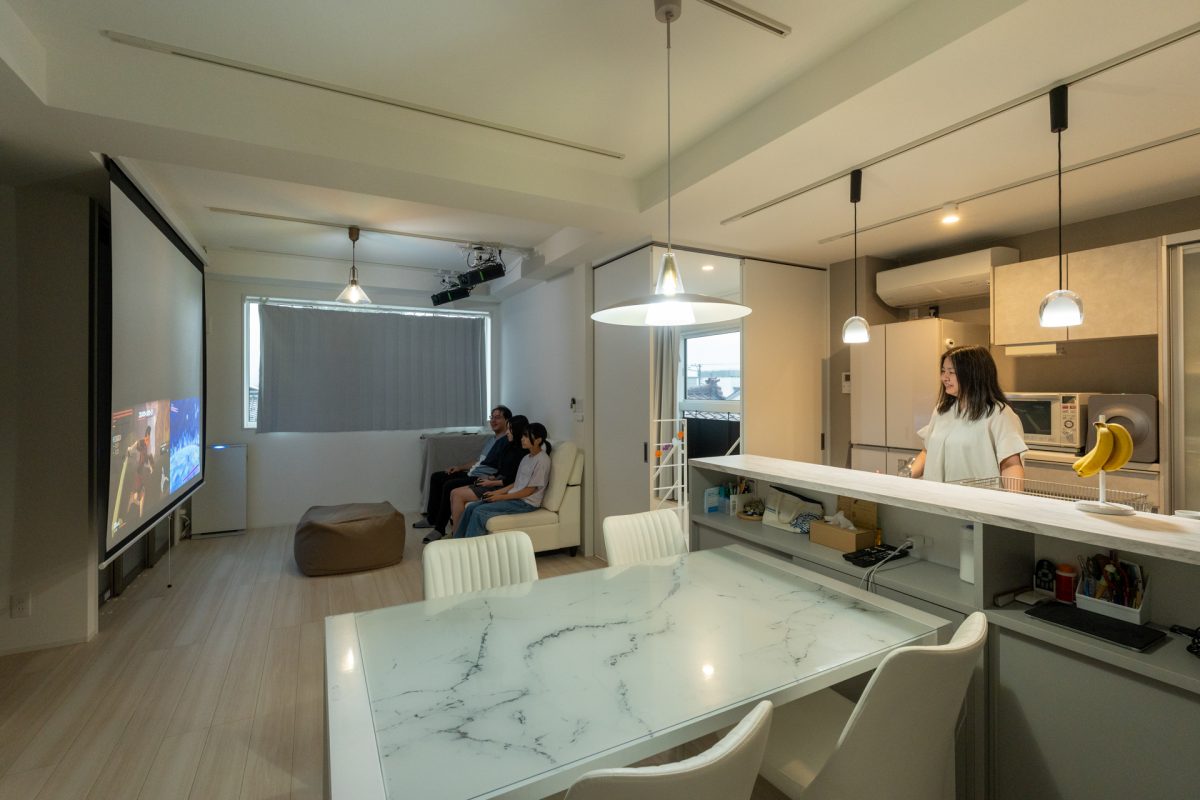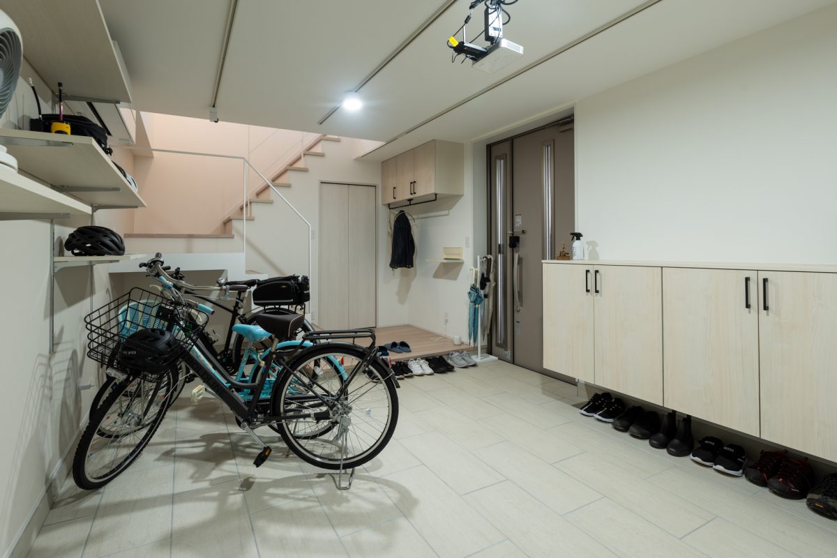 :うん。天候に関係なく、自転車をエアロバイク代わりにして、プロジェクターで動画を観ながらトレーニングしているんです。それに、1階は玄関だけで生活空間は2・3階なので浸水リスクもなく安心です。