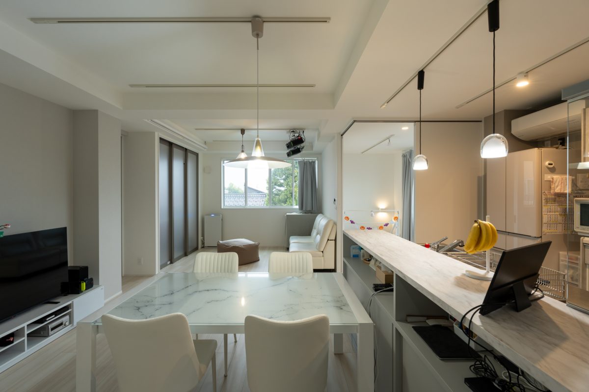 :それと照明。ほとんどの部屋にダクトレールを採用しています。建築士さんと何度も打ち合わせを重ねて、照明の位置や角度まで調整しました。プロジェクターを取り付けられるのも便利なんですよ。